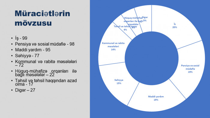 2022-ci il ərzində ümumilikdə 507 müraciət (307 müraciət yazılı formada, 200 müraciət şifahi formada) daxil olub.