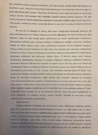 Hazırda Türkiyə Cümhuriyyəti Osmanlı Arxivində (BOA.HR.SYS, no. 2398/4, v. 12) saxlanılan bu sənəddən məlum olur ki, yuxarıda adları çəkilən Azərbaycan nümayəndələri Cənubi Qafqazda erməni dövlətinin yaradılmasını Türkiyə, Azərbaycan və Böyük Türk siyasətinin gələcək mənafeyi üçün daha doğru yol hesab ediblər və bu yöndə öz mülahizələrini əsaslandırmağa çalışıblar (4 səhifədən ibarət olan bu müraciətin orijinalı və transkripsiyası əlavə edilir).