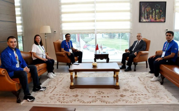 Gənclər və idman naziri Fərid Qayıbov və nazir müavini Mariana Vasilyeva ilə birgə Konya Texniki Universitetinun rektoru Babur Özçeliklə görüşdük.