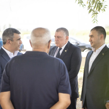 Kənd Təsərrüfatı Naziri İnam Kərimovla Milli Qəhrəman Mübariz Əhmədovun qardaşı Qürbət müəllimlə əkin sahələrində görüş keçirildi